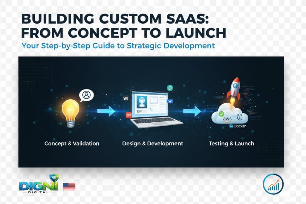 دليل شامل يغطي كل مرحلة من تطوير SaaS المخصص، من المفهوم الأولي عبر التصميم والتطوير والإطلاق الناجح.