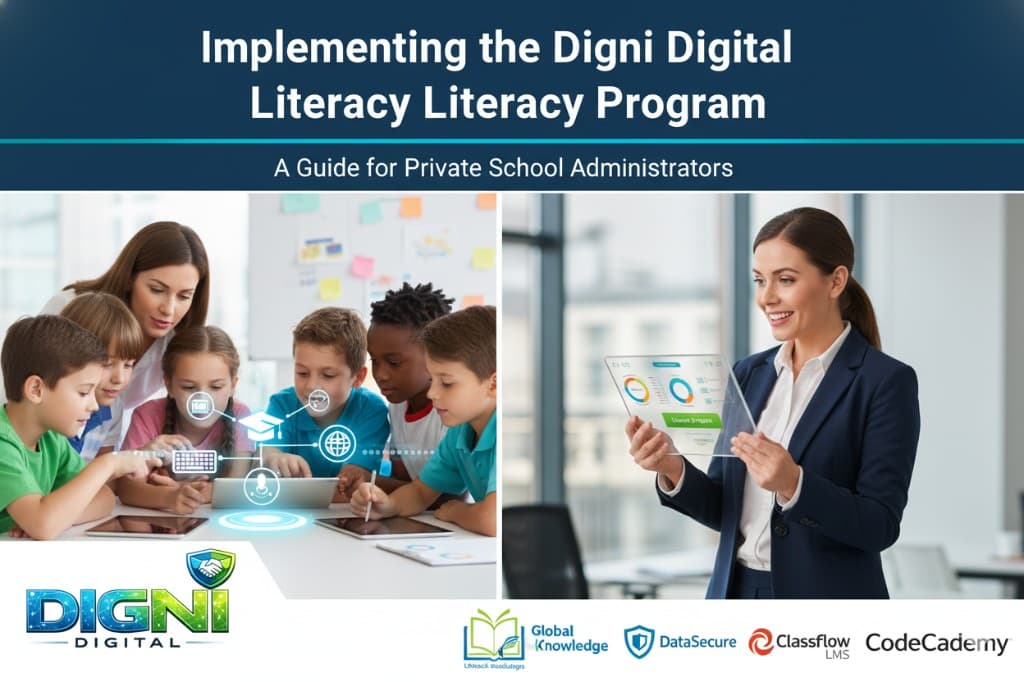 دليل شامل لإداريي المدارس الخاصة حول تطبيق برنامج محو الأمية الرقمية من ديجني، من التخطيط إلى التنفيذ.